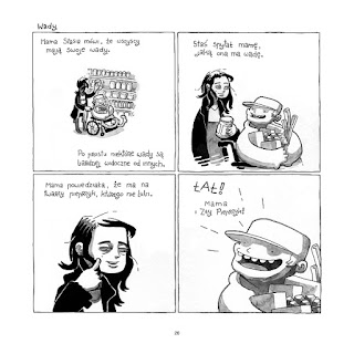 Teraz tak trochę odejdę od komiksu, a wlezę na własne poletko, bo wiecie, z niepełnosprawnością dziecka mam do czynienia od lat, wszak Marianka jest niesłysząca od urodzenia. Bardzo, ale to bardzo często zdarza się tak, że niepełnosprawność rośnie i spoza niej nic nie widać. Patrzymy na dziecko (ew. dorosłego) i myślimy sobie: on nie ma rąk, nie ma nóg, jest niewidomy, ma zespół Downa. I już, koniec, to zdanie determinuje nam człowieka, a potem cholernie ciężko jest przebić się przez to pierwsze zdanie i dotrzeć do charakteru, upodobań, ogólnie głębiej. W drugą stronę też to występuje - tu odsyłam do książki "Dłoń" Michała Dąbrowskiego, gdzie chłopak, który urodził się bez dłoni, żył tak, jakby ta nieistniejąca dłoń rządziła jego życiem. Wlazła mu na głowę, wlazła mu do głowy. Trudno to pojąć bez osobistych doświadczeń, ale takie zjawisko istnieje.